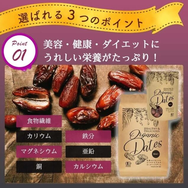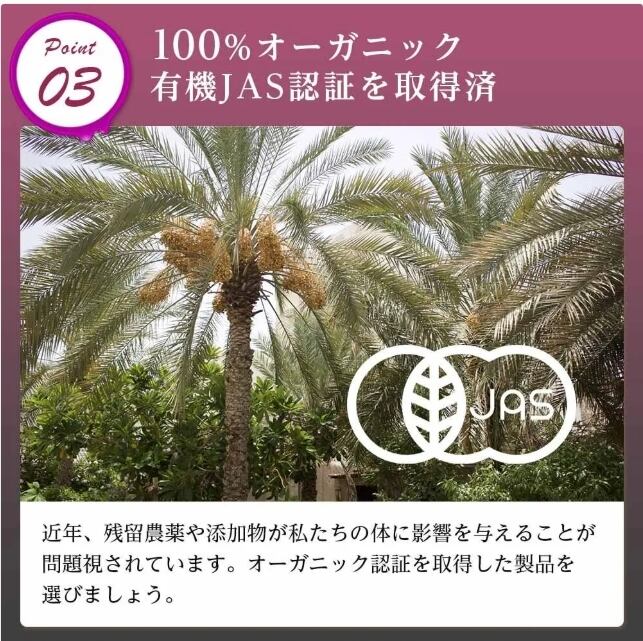 ●有機JAS認定!●砂糖不使用、添加物不使用の無添加デーツ!