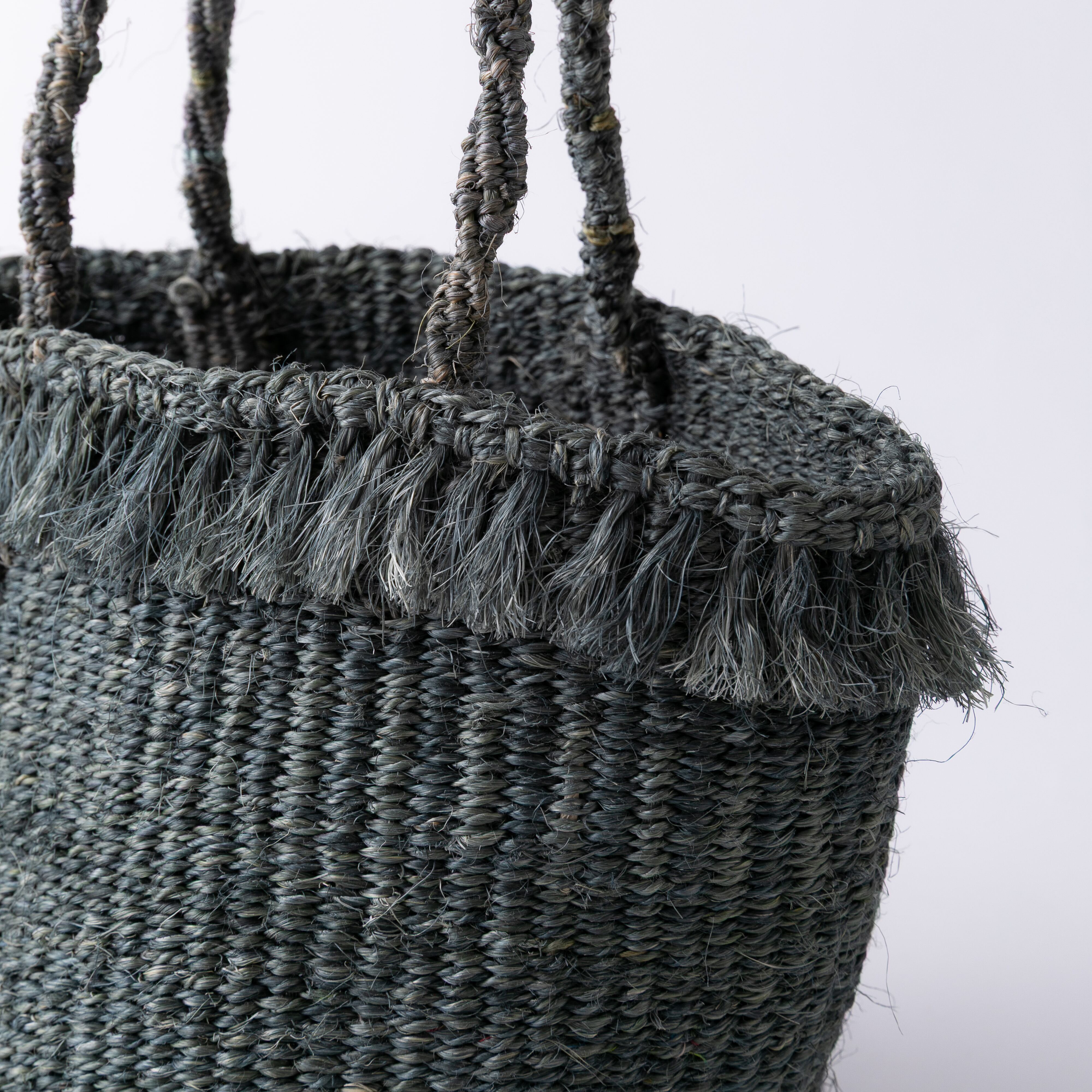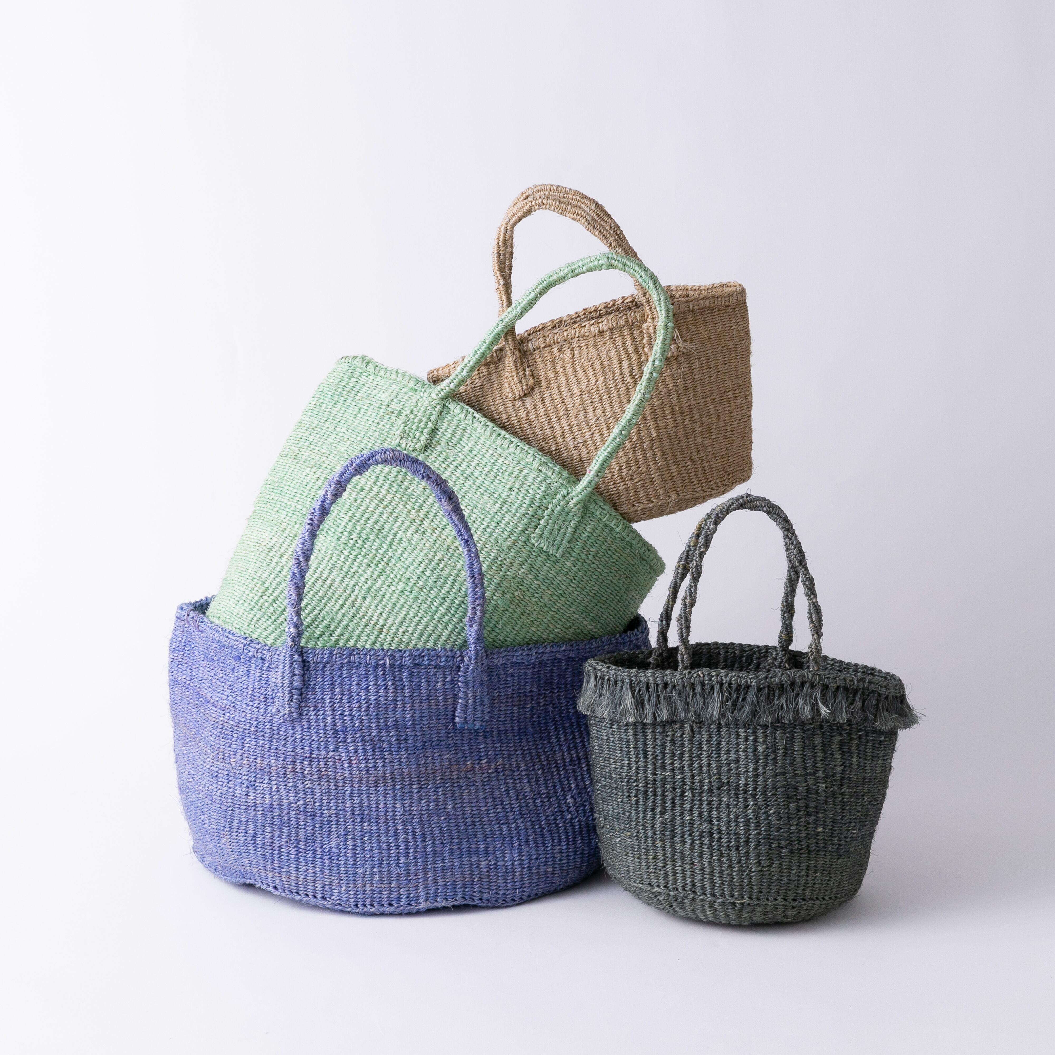 ケニアではサイザル麻で編むカゴ作りが盛んで、農村に住む女性たちによって手仕事として受け継がれてきました。サイザルバスケットは、サイザルの葉を刈り取って繊維をとりだし、糸に撚ってから染めたものを、乾かし、編んで作ります。日本ではサイザルバッグ、サイザルかごと呼ばれることもあります。