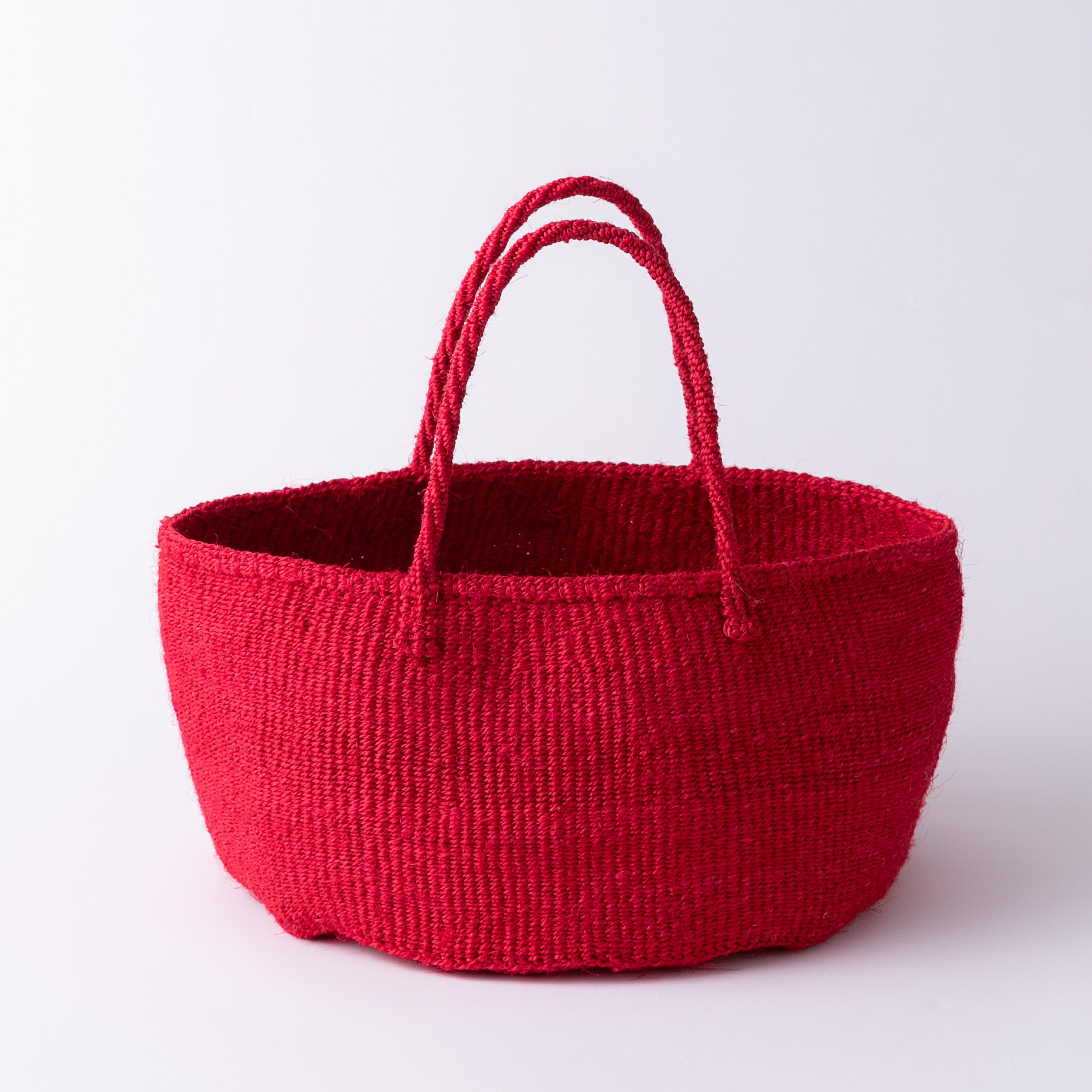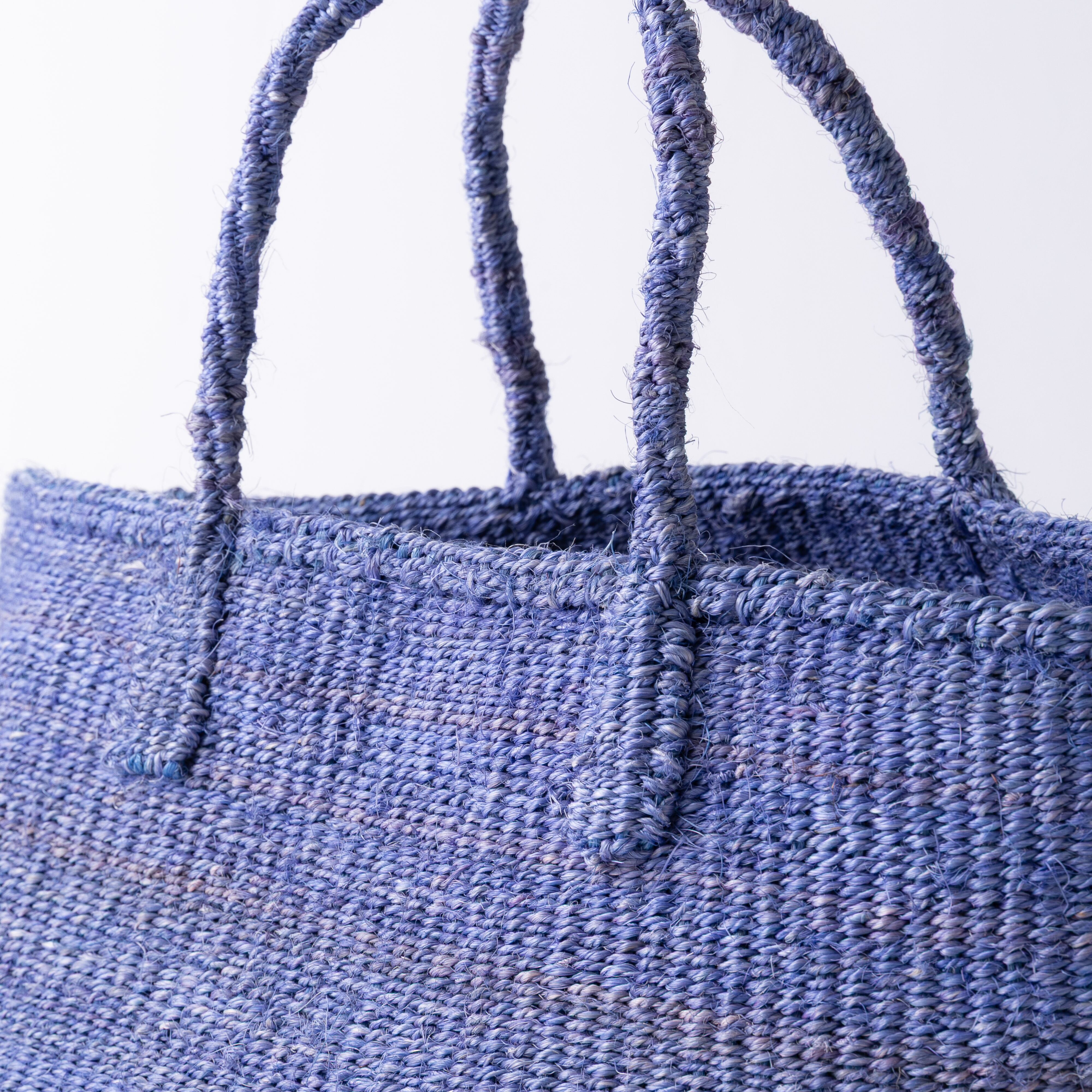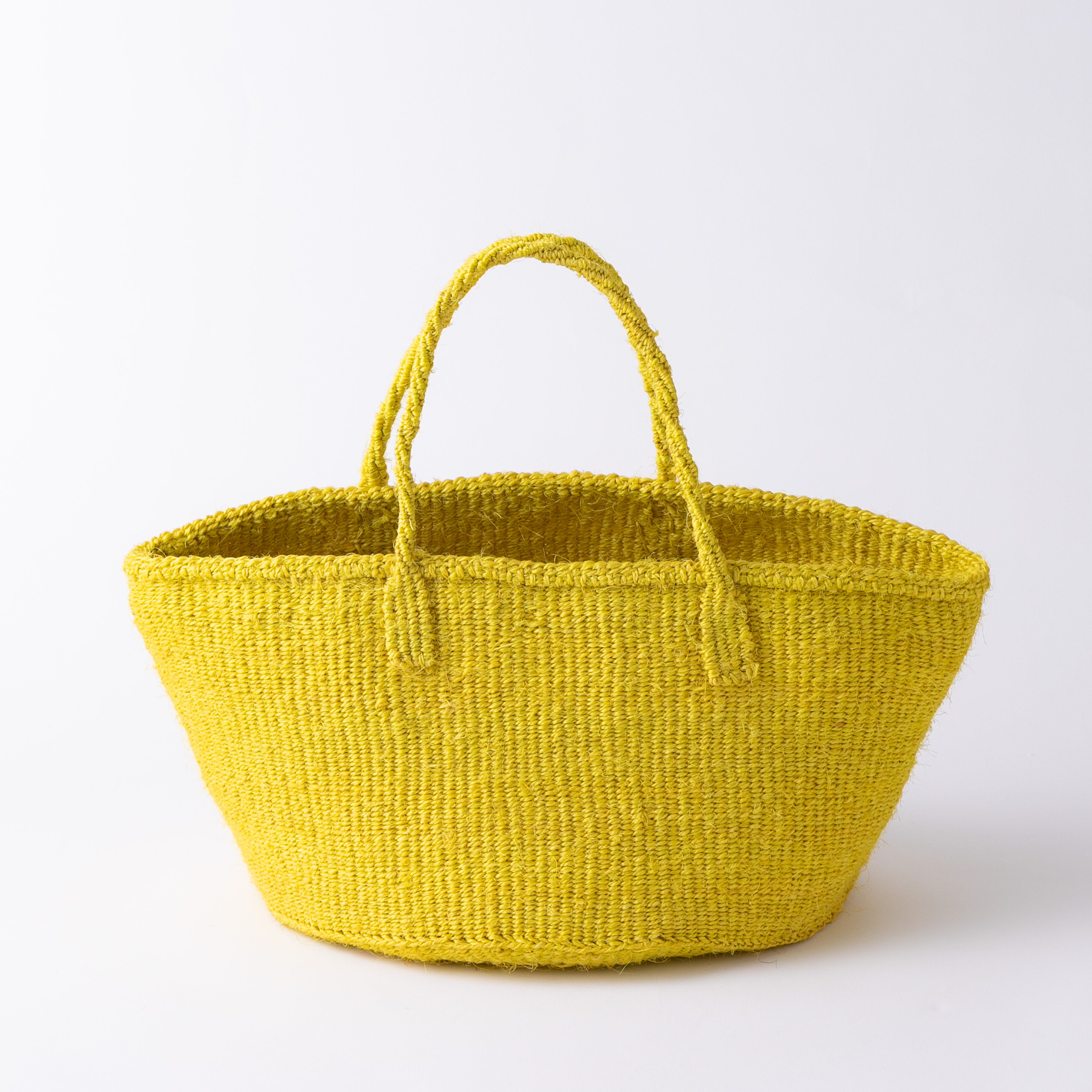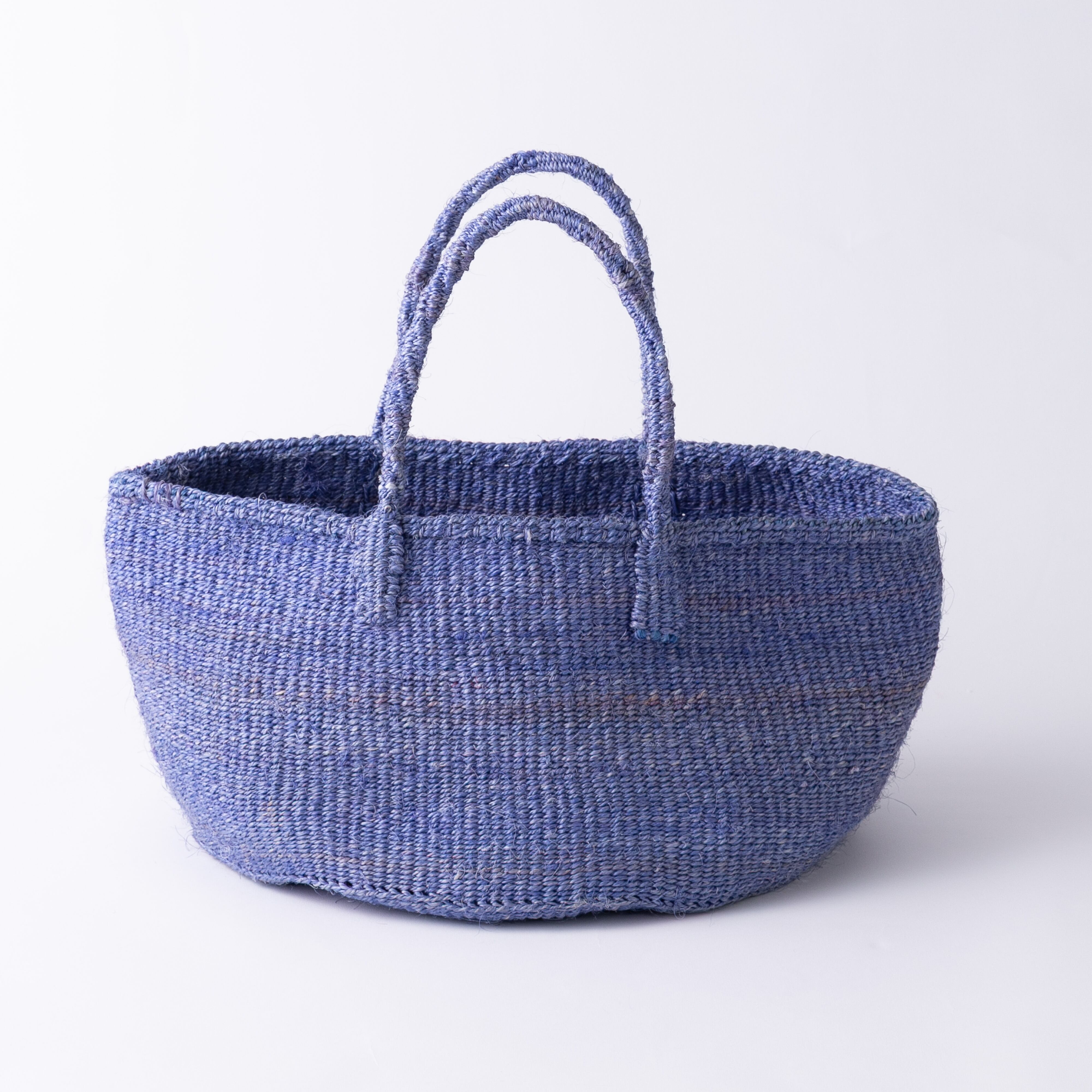 ケニアではサイザル麻で編むカゴ作りが盛んで、農村に住む女性たちによって手仕事として受け継がれてきました。サイザルバスケットは、サイザルの葉を刈り取って繊維をとりだし、糸に撚ってから染めたものを、乾かし、編んで作ります。日本ではサイザルバッグ、サイザルかごと呼ばれることもあります。